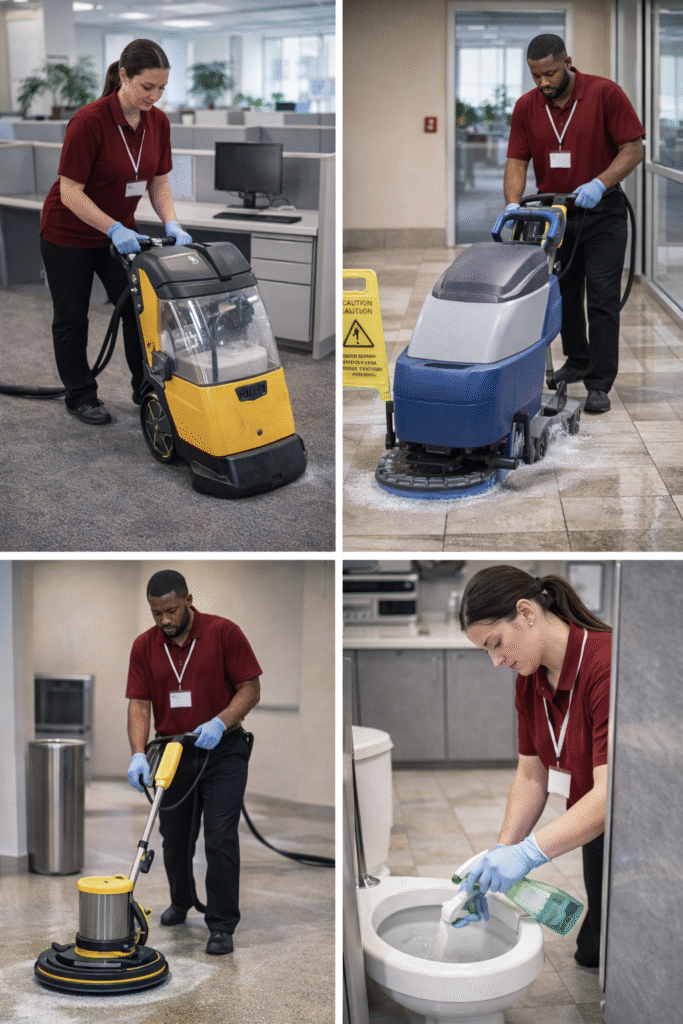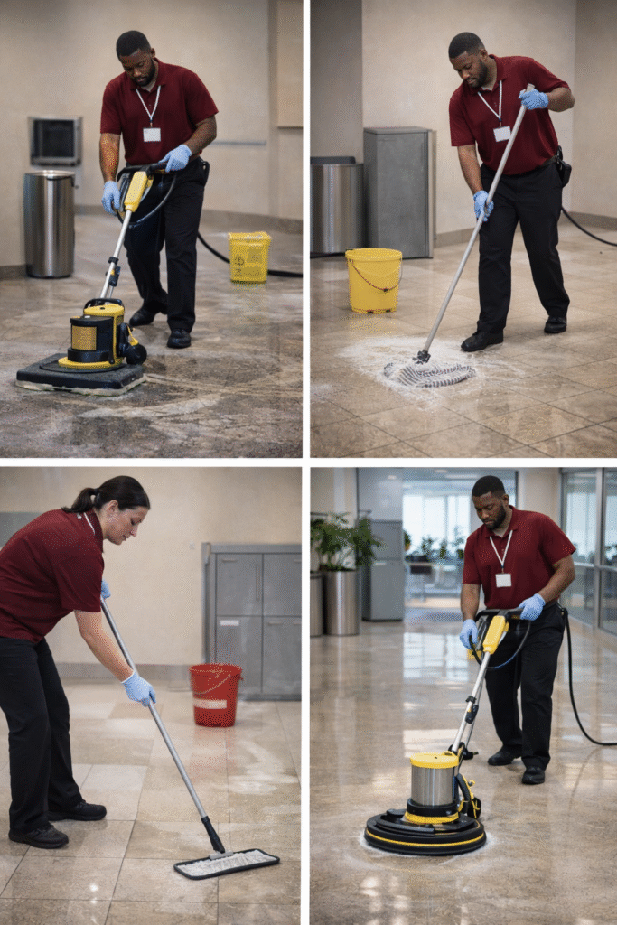 At Danso Dynamics, we keep offices, stores and buildings across Florida spotless. We design a custom plan around your schedule, follow area-by-area checklists with constant supervision, and use eco-friendly products and techniques that protect people and the environment. From daily and deep cleaning to disinfection and post-construction, our trained, uniformed team delivers consistent, safe, and on-time results—so your business looks professional every day.